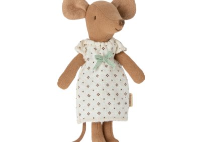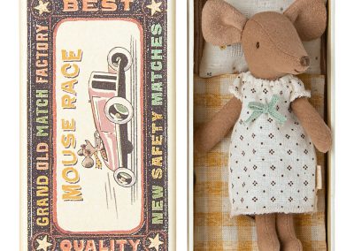 A classic Maileg item. This mouse is ready for hours of play and sleeps tight in the matchbox. The clothes and bed linen come in unique prints and beautiful colours.