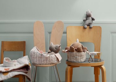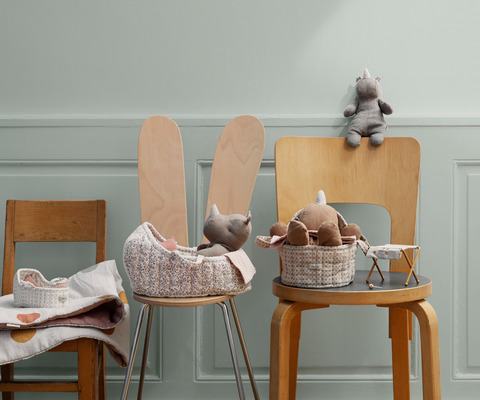 A small portable bed for your soft friends – small Bunny plush and small Safari friends fit perfectly. With this carry cot, it is easy to bring along your friend. Your friend will sleep tight with the soft pillow and under the warm knitted blanket.