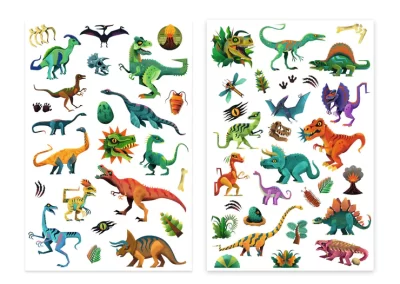 Two temporary tattoo sheets with a dinosaur theme to delight children! They are pre-cut, so they are easy to use: just apply a bit of water.