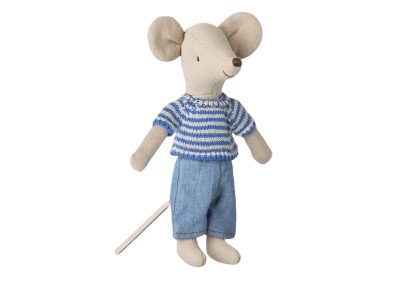 If you need a new set of clothes for your mouse this set is a really classic choice. The soft knitted sweater with blue stripes comes with a pair of jeans.