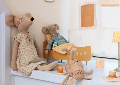 This maxi mouse is dressed in a nightgown and has a sleeping mask to ensure a good night`s sleep.
