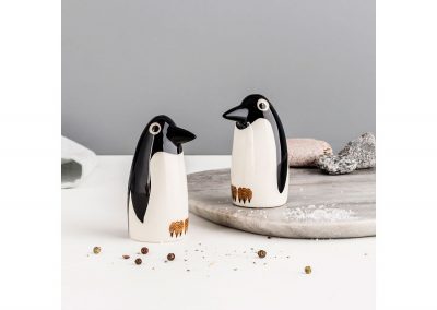 Designed in the UK by Hannah Turner, these Penguin shakers make a loving pair, with their comical beady eyes, and funny orange feet. They are loosely modelled on Adelie Penguins, but would catch the eye of any Penguin admirer! These Penguins are part of Hannah’s growing range of Salt and Pepper Shakers, and would liven-up any kitchen.