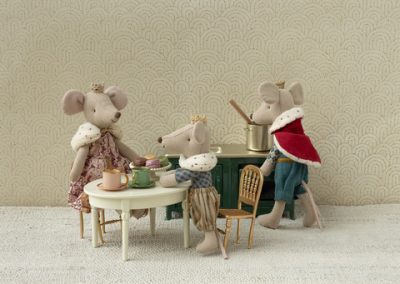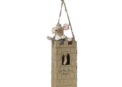 A real prince mouse in a big brother size. He is dressed in his finest clothes with beautiful details and a golden crown. He is presented in a mini castle bag.