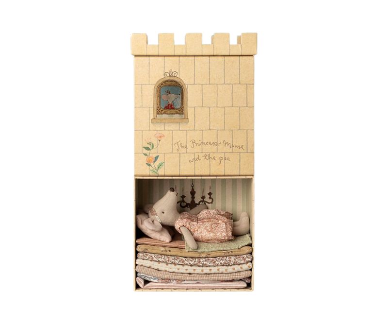 A classic Maileg item. The famous fairytale “the princess and the pea” is the inspiration behind this playset. The set includes a castle with mattresses, a pea and a princess mouse. Combine this set with other mice and accessories for more play.