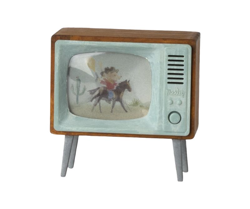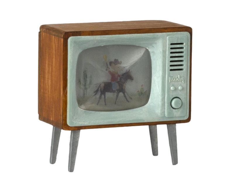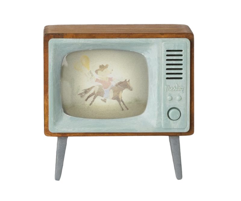 Upgrade your mousehome with a television that can gather the familiy for hours of fun. It brings a cosy touch to the home decor with the beautiful frame made in wood. Let the story begin and imagine what is shown on the screen.