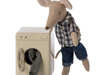Every busy household needs a helping hand for the laundry – a washing machine is the right solution. It is made in metal and painted in off-white color, with many details that makes it indispensable in the play. Perfect in size for the mouse family.
